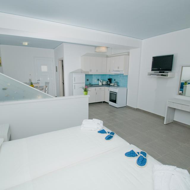 De studios zijn zeer ruim en modern ingericht en voorzien van alle gemakken; Een eigen keuken, badkamer en andere luxe faciliteiten. Door de mooie ligging, hebben alle studios een adembenemend uitzicht op de zee. Dat is nog eens genieten vanaf je balkon! De dag begint met een heerlijk ontbijtje (bij te boeken). Lunchen en dineren kan het beste in het centrum. Smul van een vers gevangen visje of authentiek Grieks gerecht. Natuurlijk eindigt de avond met een glaasje Ouzo, het is tenslotte vakantie!