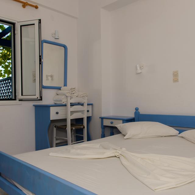 De kamers zijn helemaal in de Griekse blauwe en witte kleuren ingericht. Bij het wakker worden kijk je gelijk uit over de prachtige zee. Loop daarna naar het zwembad en neem een verfrissende duik in het water. Erg bijzonder is dat het een infinity pool is. Je kijkt hier dus direct uit op de zee, welke je overigens al van dichtbij kan bewonderen na 80 meter lopen.