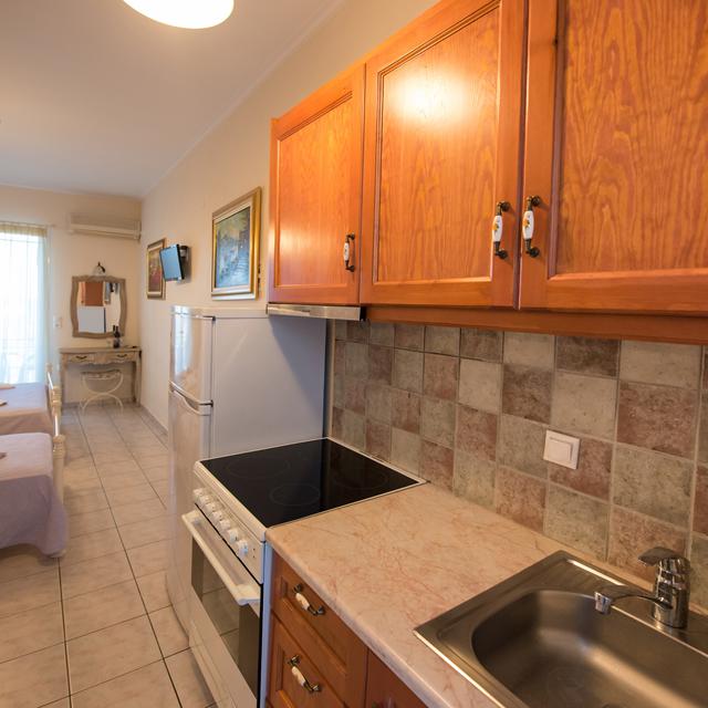 Aan de voet van de berg met een prachtig uitzicht op de Ionische zee, ligt Aparthotel Kastro Maistro. Het landschap betovert je met haar mooie olijfbomen en prachtige kliffen. Wanneer je op een bedje bij het zwembad lig te relaxen, waan je jezelf in een klein paradijs, dat is echt genieten. Na een fijne nacht in je appartement, die nog niet zo heel lang geleden werden opgeknapt, staat er een ontbijt voor je klaar en eens op je gemak bedenken wat je gaat doen. Op deze bestemming raak je niet uitgekeken. Naar het strand van Agios Ioannis kun je wandelen en zie je hoe de sufers de golven bedwingen met hun board. In de buurt vind je een mini market en ook in de omgeving van Kastro Maistro kun je gezellig dineren in een typisch Griekse taverne. Fijne vakantie!