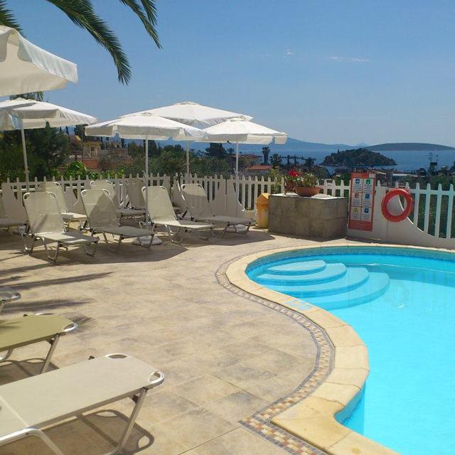 Vanaf eenvoudig ingerichte, maar ruime kamers is het uitzicht over de helderblauwe zee of de bergen schitterend. Ook vanaf het mooie zwembadterras kun je wegdromen bij het mooie uitzicht over het dorpje en de zee; en dat kan onder het genot van een verfrissend drankje dat bij de poolbar te halen is.