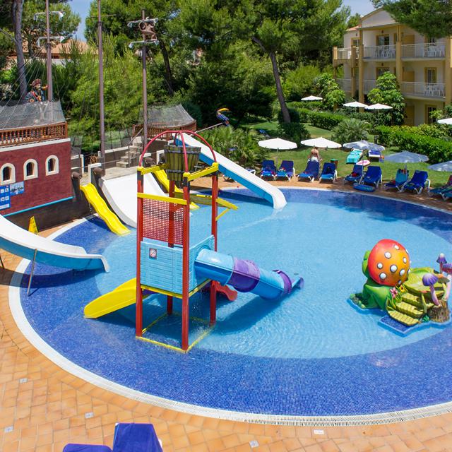 Kinderen kunnen hun hart ophalen in dit ontzettende leuke aparthotel: voor hen is er een zwembad met een piratenboot, waar ze vanaf kunnen glijden via verschillende glijbanen. En na het zwemmen, hoeven ze zich zeker niet te vervelen, want bijna de hele dag staat er een enthousiast animatieteam voor hen klaar!