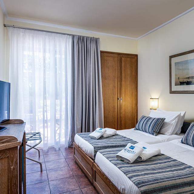 De appartementen zijn in traditionele stijl gebouwd, maar met moderne faciliteiten zoals bijvoorbeeld een fitnesscentrum. Wat meteen opvalt is het lekkere ruime zwembad met genoeg plek voor iedereen om van het zonnetje genieten. De Griekse gastvrijheid zal je ook versteld doen staan. Kijk niet gek op als de eigenaar een praatje met je komt maken en vraagt hoe jullie dag is geweest.