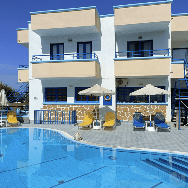 Dit kleinschalige familie complex staat al jaren bekend als een heerlijke plek om je vakantie te vieren. Deze typisch Griekse appartementen zijn goed onderhouden en veel van wat je terugziet in de decoratie komt uit eigen hand. De appartementen liggen op steenworp afstand van het strand. Blijf je liever bij het zwembad dan verzorgd Mike graag een heerlijk drankje voor je. Samen met zijn ouders doet hij zijn best je van een zorgvrije vakantie te voorzien en is hij altijd in voor een praatje. Door de ligging, in één van de zijwegen, is het rustig terwijl je je op loopafstand van het centrum bevindt. Het is de ideale plek voor een rustige, zorgvrije en typische Griekse ervaring!
