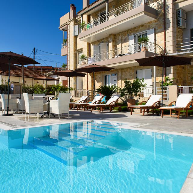Appartementen Angelo Del’Arte is een rustig gelegen bied veel comfort onder de Griekse zon! Het is een kleinschalig adresje en biedt je volop rust, waarbij het zwembad ideaal is om in af te koelen of baantjes te trekken. De naastgelegen poolbar is absoluut een aanrader om te genieten van je favoriete drankje. De appartementen zelf zijn modern ingericht en voorzien van alle gemak.