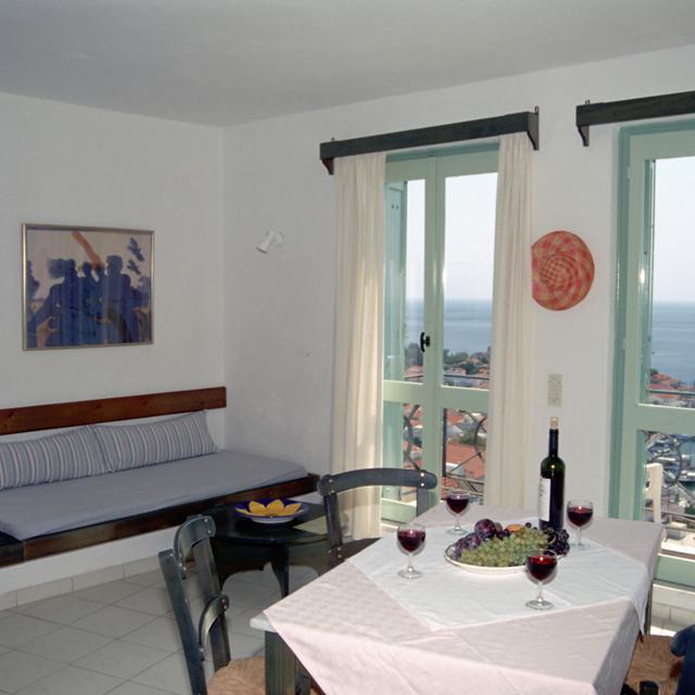 Het kleine complex straalt veel rust uit en dat komt mede dankzij de kleinschalige omvang. Je kunt hier dus in alle rust op en top ontspannen. Vooral op de veranda van het complex is het heerlijk om te genieten van een drankje, met een fantastisch uitzicht over zee en de haven van Pythagorion. En als je de drukte op wilt zoeken, ben je ook zo in het levendige centrum.