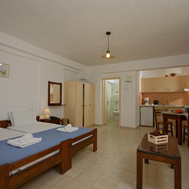 Zoek je een een goed vakantieadres, direct aan zee en vlakbij het Star Beach Aquapark? Dan is Appartementen Elalia een goede keuze! Het is een mooi complex met nette en ruime appartementen, wanneer je ’s morgens de balkondeuren opent, hoor je het ruisen van de zee. Vanuit Elalia wandel je zo naar de supermarkt en de bakker voor verse broodjes. Ook ben je binnen een paar minuten in het bruisende centrum van Chersonissos. Ideaal gelegen!