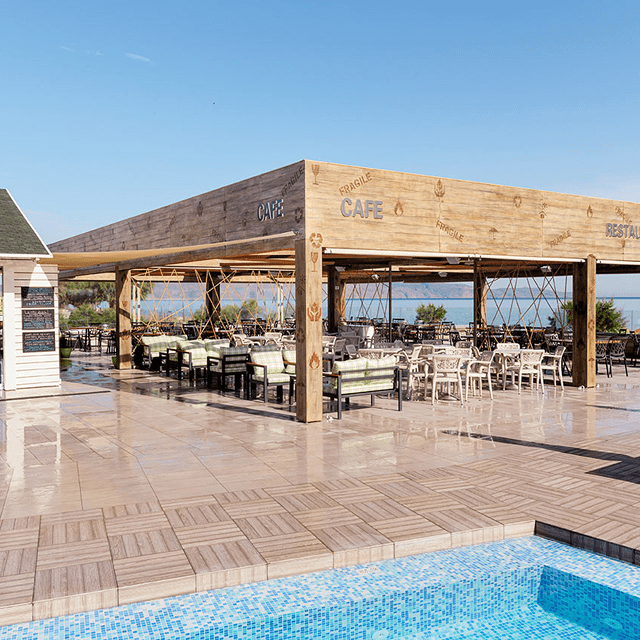 Er is een groot zwembad voor heel wat uurtjes waterpret met daaromheen een enorm terras om goed te genieten van de zon. Bij de gezellige bar schenkt de barman graag een verkoelend drankje in terwijl hij gelijk wat tips geeft over de omgeving. Vanaf je ligstoel droom je weg met een prachtig uitzicht over de blauwe zee en kom je helemaal tot rust. De kids kunnen zich lekker vermaken in het aparte kinderbad of in de uitgebreide ingerichte speelruimte.