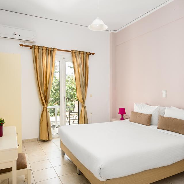 Alle appartementen zijn netjes ingericht en hebben een volledig uitgeruste kitchenette. Er zijn studio’s voor twee personen, maar ook appartementen met één of twee slaapkamers. Er zijn in de omgeving verschillende winkeltjes en minimarktjes te vinden. Ook liggen er op loopafstand verschillende tavernes waar je een heerlijk Grieks gerecht besteld.