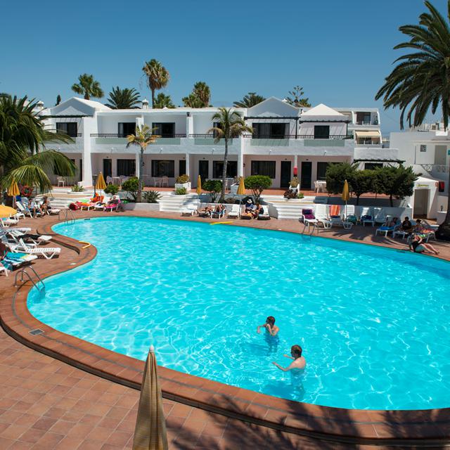 In totaal zijn er 145 appartementen die verspreid liggen over 9 verschillende witte gebouwtjes met een typische bouwstijl voor de omgeving. Dit betekent laag en wit. Precies zoals kunstenaar en architect César Manrique het bedacht had. Onder de palmbomen in de tuin vind je 2 fijne zwembaden en een grote groene ligweide. Het is er goed toeven als je lekker een dagje wilt luieren. Liever naar het strand? Na zo’n 100 stappen sta je al met je voeten in het zand!