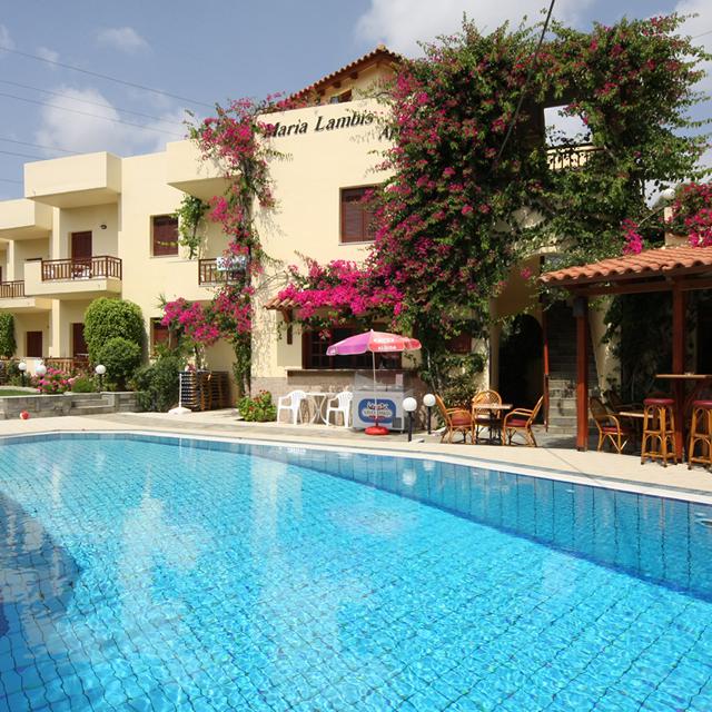 Appartementen Maria Lambis is een gezellig complex op loopafstand van het strand en het centrum. Op het complex hangt een ontspannen en vriendelijke sfeer. Het zwembad is gelegen in een mooi aangelegde tuin. Hier kun je genieten van de prachtige bloemen en de Griekse zon!
