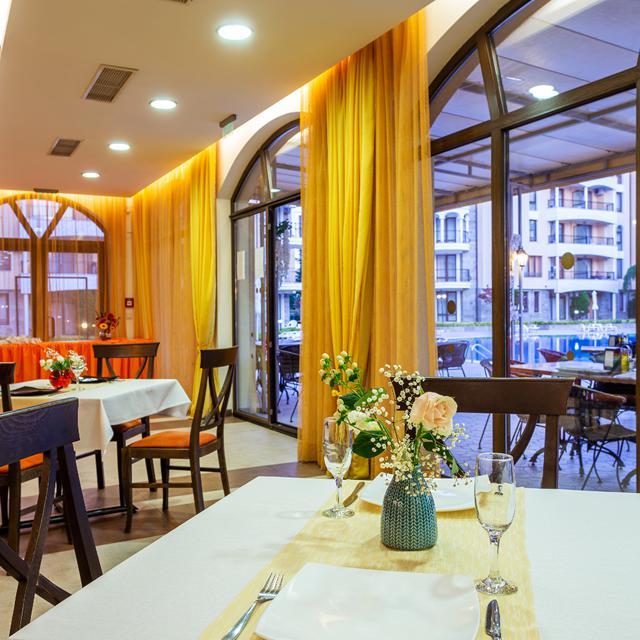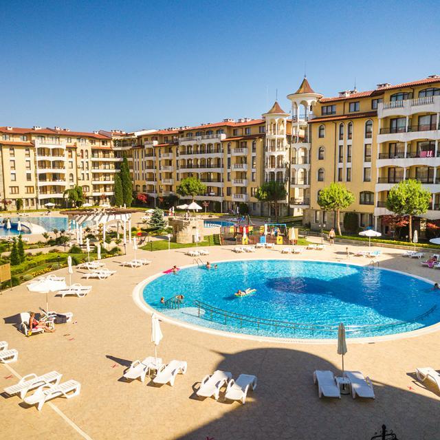 In de tuin van Royal Sun liggen twee royale zwembaden en is er voor kinderen een apart zwembadje en zelfs een kleine speeltuin. Dat maakt Royal Sun perfect voor families. Relaxen gaat je hier dan ook eenvoudig af; geniet op een ligbedje bij het zwembad, bestel lekker wat te drinken in de (cocktail)bar of reserveer een weldadige behandeling voor jezelf in de wellness. Je kunt er voor kiezen om in het comfortabele appartement een eenvoudige maaltijd te bereiden, maar de menu’s in het à la carte restaurant zijn zeker aan te raden. Er zijn zowel tafeltjes binnen, maar ook buiten op het gezellige terras. In dit complex vind je alles wat je nodig hebt voor een onvergetelijke vakantie!