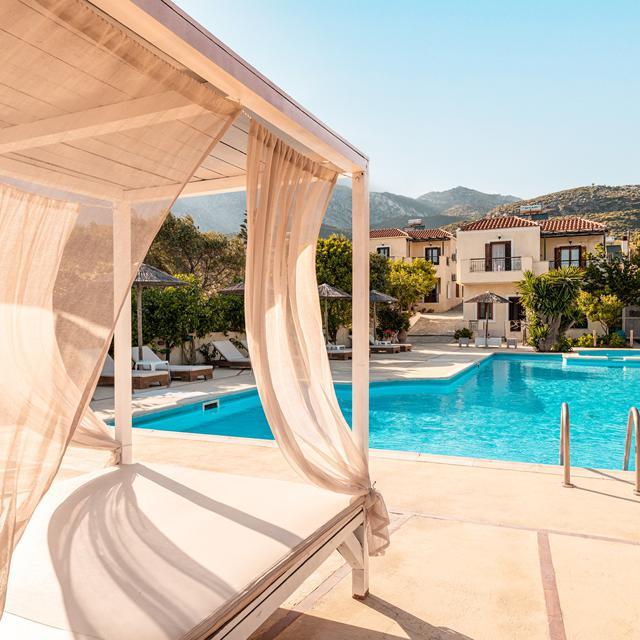 De rustige, maar centrale ligging van Appartementen Sonia is perfect als je ook op zoek bent naar een beetje ontspanning. Met de bergen op de achtergrond kun je hier, aan de rand van het zwembad, in alle rust genieten van de zon of een goed boek. De Griekse sfeer en de hartelijkheid van het personeel doen hier de rest.