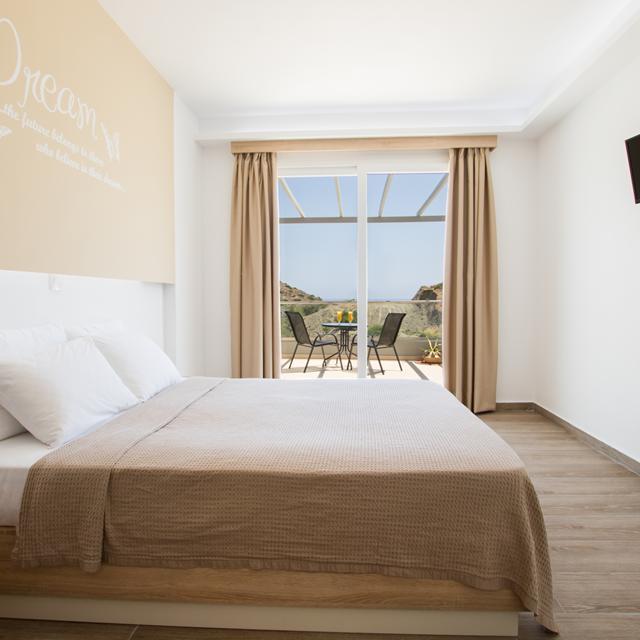 Deze Sunweb Villages heeft moderne appartementen met een inrichting die zeer stijlvol is. Er is gebruik gemaakt van mooie materialen en rustige kleuren. Ideaal om even bij te komen na een zonnige dag en je klaar te maken voor een avondje in Karpathos-Stad.