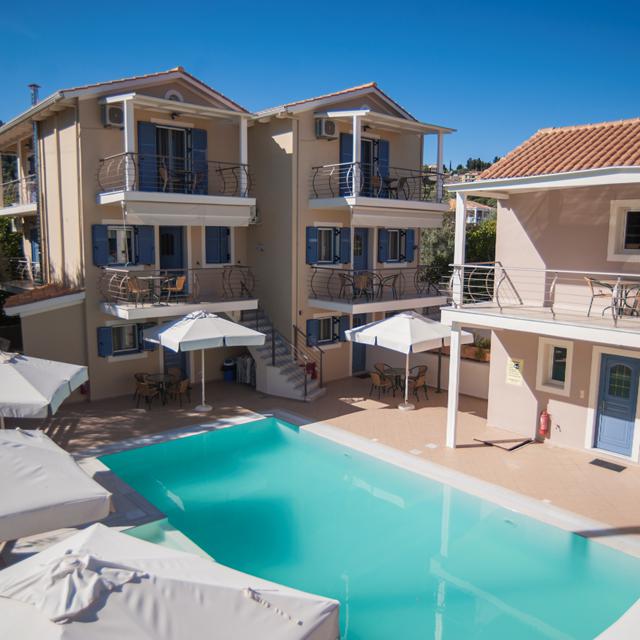 De twaalf stijlvolle appartementen van Appartementen Villa Theodora zijn verspreid over drie kleine gebouwen. Tussen de gebouwen in ligt een zwembad waar je lekker van het zonnetje kunt genieten, maar dat kan natuurlijk op op het strand dat op zo’n 150 meter afstand ligt. De tavernes en winkeltjes van het knusse vissersplaatsje Nikiana liggen op steenworp afstand, omdat de appartementen in het centrum liggen.