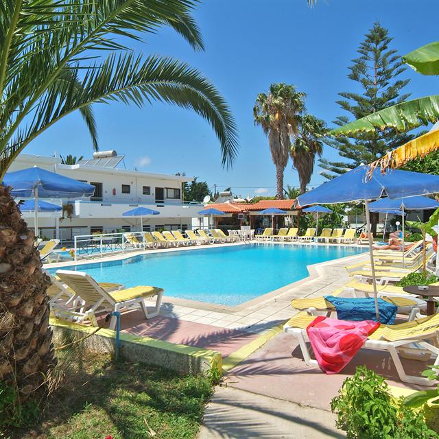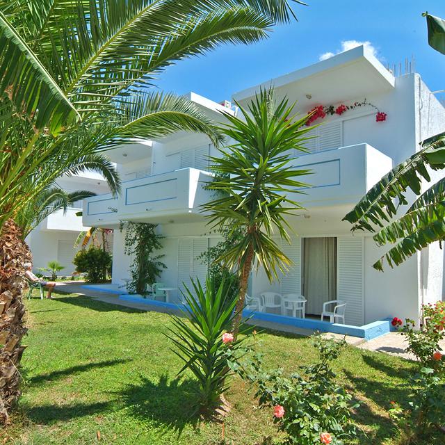 De appartementen liggen verspreid over de groene tuin en het zwembad. Omgeven door palmbomen is er ook altijd wel een plekje in de schaduw te vinden. Maar afkoelen kan uiteraard ook goed door een duik te nemen in het zwembad. Wat ook fijn is, is dat je in de directe omgeving ook veel leuke restaurantjes kunt uitproberen.