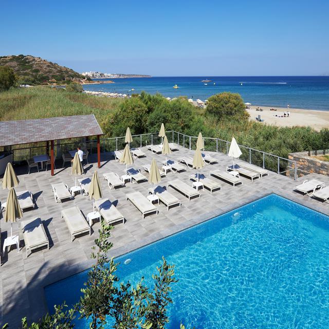 Het kleinschalige Blue Acqua Hotel ligt vlak bij het prachtige Almiros strand van Agios Nikolaos. Voor de echte strandliefhebbers een fantastische plek. Het kristalheldere zeewater daagt je uit voor een verfrissende duik om heerlijk te kunnen afkoelen na een paar uurtjes in de zon. Liever bij het zwembad de dag doorbrengen? Ook dit kan bij het hotel. Op het terras staan de ligbedjes voor je klaar, heb je zo een lekker drankje besteld aan de bar en kun je genieten van het mooie uitzicht. De kamers zijn netjes ingericht en bieden allemaal een balkon waar je aan het einde van de dag nog even kunt nagenieten. In het restaurant staan er lekkere gerechten voor je klaar uit de Mediterrane of Kretenzische keuken, bereid met verse en vooral lokale ingrediënten.