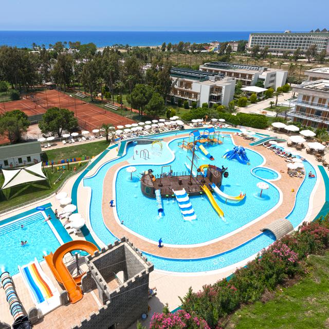 Wat zo fijn is bij dit hotel is dat de zwembaden in verschillende delen liggen. Zo zijn er 3 zwembaden om uit te kiezen en als het aan de kinderen ligt kunnen wij wel raden welk zwembad het wordt; het grote waterspeelplein, waar in het midden een groot schip staat met glijbanen. De ouders kunnen aan de zijkant van het zwembad lekker relaxen met goed uitzicht op de kinderen. Op zoek naar iets meer rust? Ga dan naar het ‘adult only’ zwembad. Ook is er een zwembad waar de animatie activiteiten worden gehouden. Doe mee met een potje waterpolo, aquagym of één van de andere leuke activiteiten.