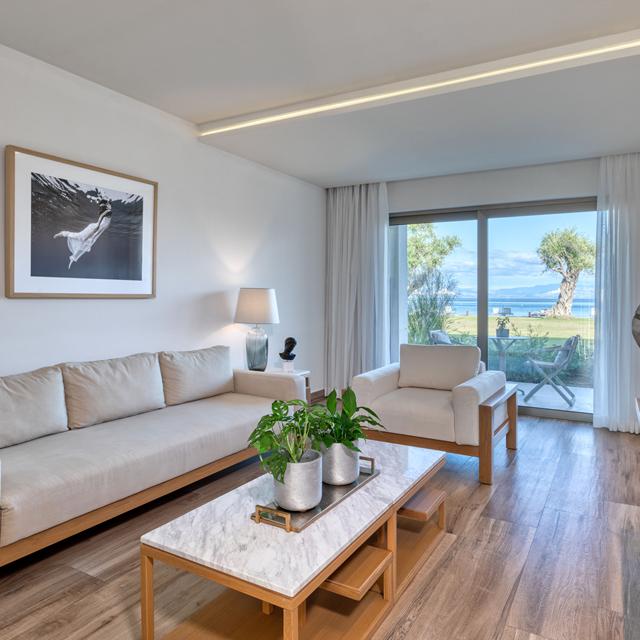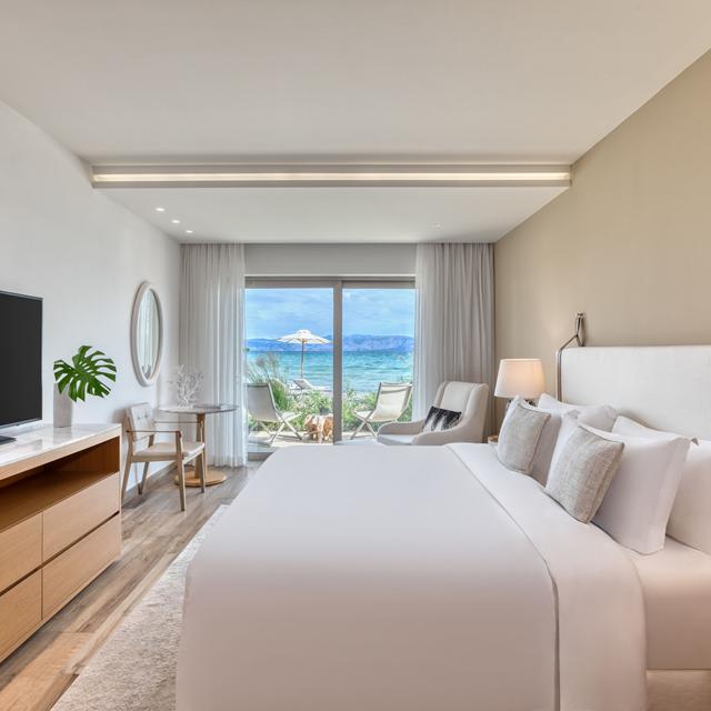 De Emerald Retreat hotelkamers en suites zijn riant en pure verwennerij, bijna beter dan thuis. Voor wie net een beetje meer wil, zijn er ook suites die een mooi uitzicht over de Ionische Zee bieden. Zet die openslaande deuren naar je terras open, dan word je wakker met het ruisen van de zee op de achtergrond. Overdag kun je de lijn van relaxen doortrekken bij het zwembad of privé-strand. Onder het genot van een koel drankje en in de schaduw van de wuivende palmbomen … Genieten!