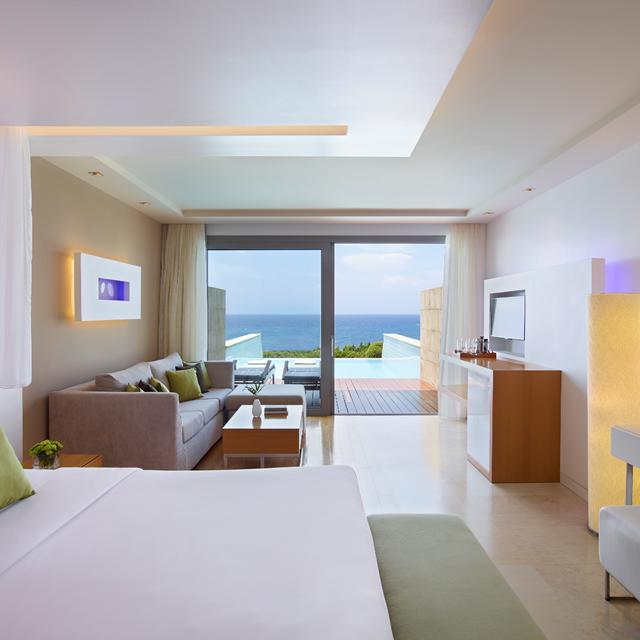 In de riante suites, waarvan sommige zelfs een privézwembad én jacuzzi hebben, kun je heerlijk cocoonen en quality time doorbrengen. Al genietend van de fles wijn en het verse fruit dat bij aankomst klaar stond kun je de keuze uit het pillow menu maken, om ervoor te zorgen dat jouw kussen voor de meest ontspannen nachtrust zorgt. Werkelijk alles aan deze romantische suites is luxe, van de elektronische gordijnen en de dvd collectie die je op het grote LCD scherm kunt bekijken.