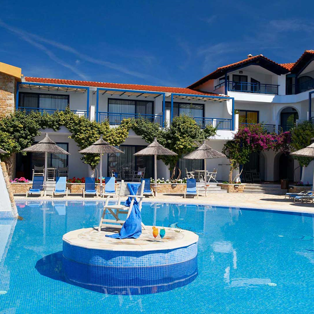 Het betoverende Hotel Acrotel Athena Pallas heeft een rustige ligging tussen het historische plaatsje Nikiti en het bruisende Neos Marmaras in. Dit hotel is net een klein dorpje en ligt pal aan een schitterend kiezelstrand met een turquoise zee.