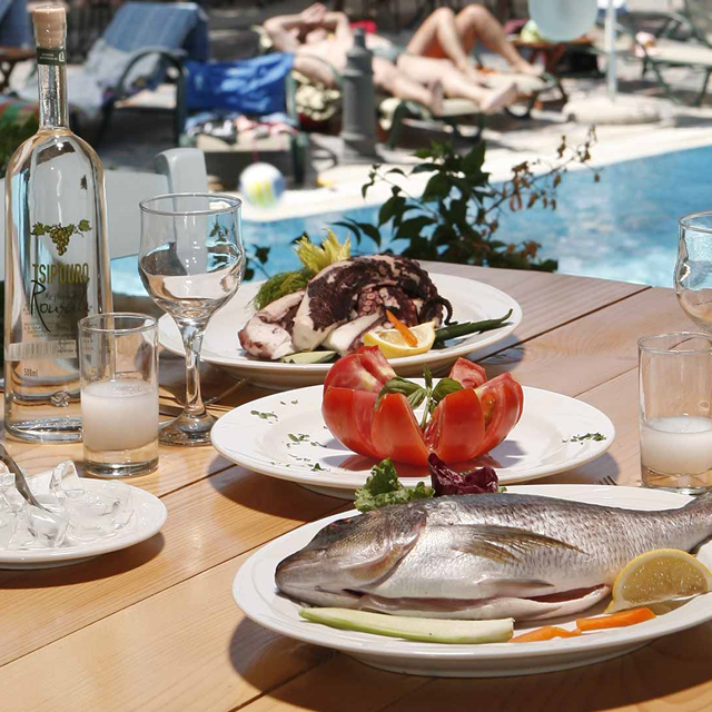 Het Athena zwembad ligt te midden van het ruim opgezette ‘dorpje’. Om dit zwembad heen liggen de taverna Hierion en het restaurant Dionysos, zodat je van het diner of een drankje kunt genieten terwijl het maanlicht weerkaatst in het blauwe water. Bij zwembad Armonia ligt een apart kinderbadje en bij de snackbar staan verfrissende drankjes en lekkere snacks op de kaart. Wat nog een leuk extraatje is, is dat je tegen een kleine betaling kookles kunt krijgen en de kids gratis pizza en cookies kunnen bakken.