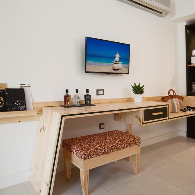 Het sfeervolle hotel is in traditionele stijl gebouwd. Deze warme stijl zie je ook terug in de verschillende kamers, door bijvoorbeeld een mooi kunstwerk aan de muur of een mooi spijlenbed. De maisonette kamers zijn van binnen ook in traditionele stijl gebouwd, met stenen muren en donkere houten meubels. Hier kun je gezellig bij de openhaard een boekje lezen en heb je uitzicht op het Petrino zwembad dat alleen voor deze kamertypes toegankelijk is.
