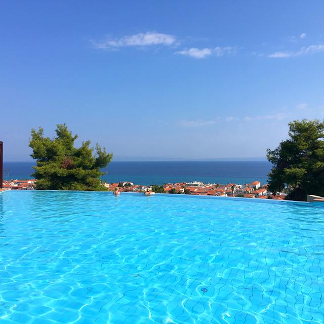 Hotel Alia Palace ligt op de top van Pefkohori Village met een waanzinnig uitzicht over het dorp en de Golf van Cassandra! Werkelijk een lust voor het oog.