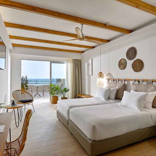 Als je naar het zwembad gaat en op één van de ligbedjes heerlijk ligt te ontspannen, geniet je van een prachtig uitzicht. Je kijkt hier namelijk uit over de baai van Maribello met een ruig landschap aan weerszijden. Ook op het strand is het lekker vertoeven, je dommelt af en toe weg, bestelt een lekker drankje aan de bar en je neemt een verkoelende duik in zee. Alle hotelkamers zijn er volledig op ingericht om het voor iedereen zo comfortabel mogelijk te maken, wat zorgt voor een aangenaam verblijf van hoge kwaliteit.