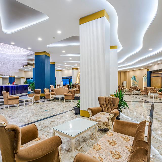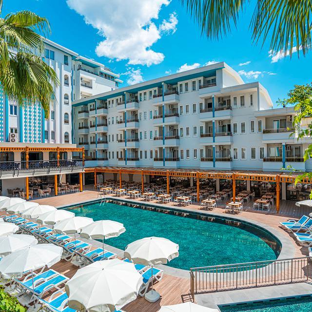 Blue Star heeft een gunstige ligging, net iets buiten het centrum van het bruisende centrum van Alanya. Met de shuttlebus van het hotel sta je binnen een mum van tijd op de kleurrijke bazaar en er rijdt ook een bus naar het langerekte, goudgele zandstrand. Bij het hotel zelf kun je ook van het Turkse zonnetje genieten bij een van de twee zwembaden Eventuele kinderen kunnen hun creativiteit kwijt in de gezellige Tweety Kids Club; de ideale plek om vakantievriendjes te maken.