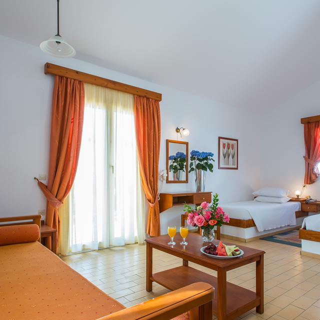 Delfinia ligt buiten het centrum van Molivos en beschikt over een schitterende tuin waar je heerlijk door heen kunt wandelen om te genieten van de mooie omgeving. Vanaf de ene kant van het complex heb je een fantastisch uitzicht op het plaatsje Molivos en aan de andere kant zie je de rotsen. Hou je van het strand? Delfinia beschikt over een lang en uitgerekt privéstrand, ideaal! Het complex zelf heeft een ruim zwembad met ligbedden en parasols. Word het je een beetje te warm? Bij de poolbar hebben ze een lekker frisdrankje voor je klaar staan. Ook de sportievelingen kunnen zich hier goed vermaken, wat dacht je van een potje basketballen, tennissen of volleyballen. In het restaurant, met uitzicht op zee, kun je heerlijk dineren. Alle gerechten worden met verse ingrediënten bereid.