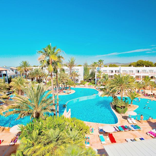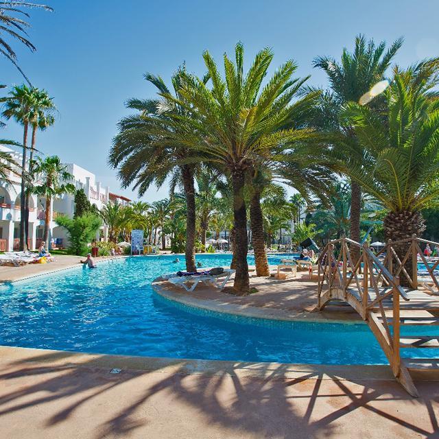 Cala d’Or Gardens heeft een prachtig zwembad dat in een prachtige, tropische tuin met palmbomen ligt. In het midden van dit zwembad ligt een klein eilandje waar je met een bruggetje naartoe kunt. Voor kleine vakantiegangers is er een grote waterspeeltuin met maar liefst acht glijbanen voor uren waterpret. Alsof dit niet genoeg is, kunnen zij ook nog meedoen met schat-zoeken, de piraten-dag en leuke dansjes leren tijdens de mini-disco.