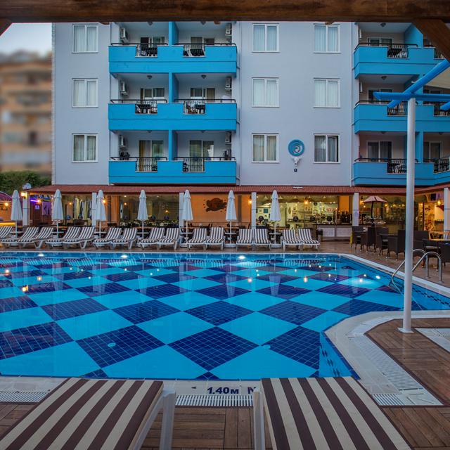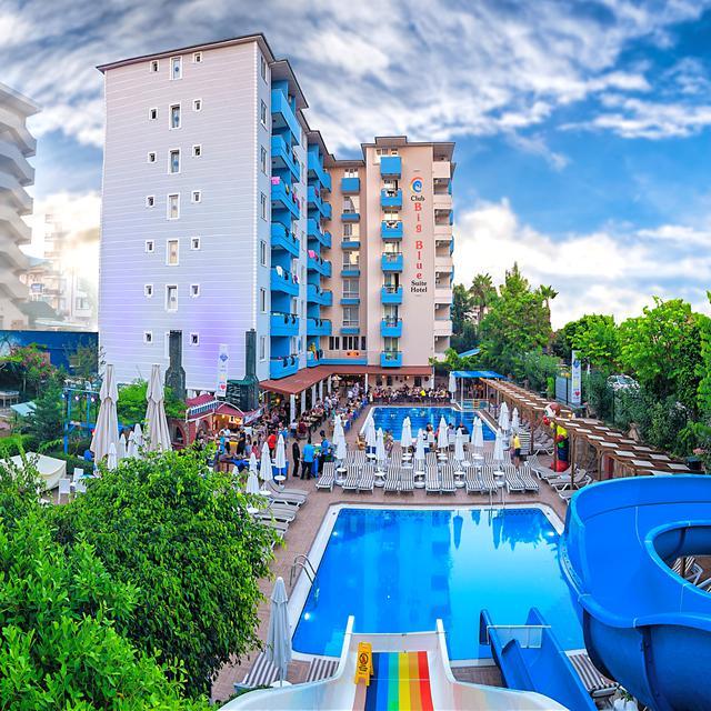 Het Hotel Club Big Blue Suite is een eenvoudig maar fijn all inclusive hotel in de wijk Oba. Het hotel is kleinschalig en overzichtelijk; dit is fijn want zo kun je vanaf je ligbedje de kinderen in het zwembad makkelijk in de gaten houden. Ook kun je het strand bezoeken wat op 400 meter afstand te vinden is. Hiernaartoe rijdt meerdere keren per dag een shuttelbus. Het centrum van Oba is binnen 10 minuten te bereiken en ook is er op 2 minuten afstand een grote shoppingmall te vinden. De dolmus (kleine bus) stopt voor de deur en brengt je binnen een mum van tijd naar het centrum van Alanya.