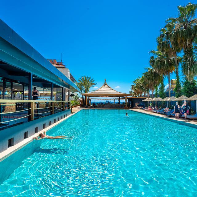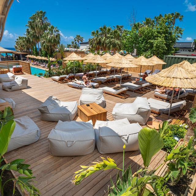 Een perfecte locatie aan het strand, een wellness en een loungebar waar je aan goede cocktails kunt nippen, lekker achterover kunt leunen en naar fijne muziek kunt luisteren. Het moderne boutique hotel Cook’s Club Alanya heeft alle ingrediënten voor een heel relaxte zonvakantie. Strijk neer op een ligbed aan zee voor een flinke dosis vitamine D of geniet van een weldadige massage in de spa. Zin om op ontdekking te gaan? Wandel dan via de boulevard naar het centrum van Alanya. Hier vind je allerlei gezellige bars, restaurants en souvenirshops. Voor een hapje en een drankje hoef je trouwens niet de deur uit. Er is een restaurants en er zijn 3 bars, waaronder een aan zee en een bij het zwembad. Er zijn lekkere bites, drinks en er is een dj. Aan alles is gedacht om jouw vakantie onvergetelijk te maken!