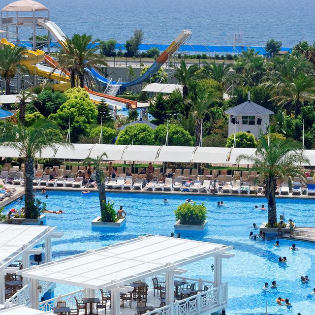 Bij dit grote resort hoort natuurlijk een grote tuin met daarin talloze mogelijkheden. Zo kun je heerlijk relaxen in de zon aan één van de zwembaden, een verkoelende duik nemen en van de drie spannende glijbanen roetsen. Zowel in het water als op het droge worden er gedurende de dag door het enthousiaste animatieteam leuke bezigheden georganiseerd; doe je mee met een intensieve aqua aerobics les of doe je liever aan rustgevend yoga? Voor kinderen is er een apart kinderbad met kleine glijbaantjes en een gezellige miniclub.