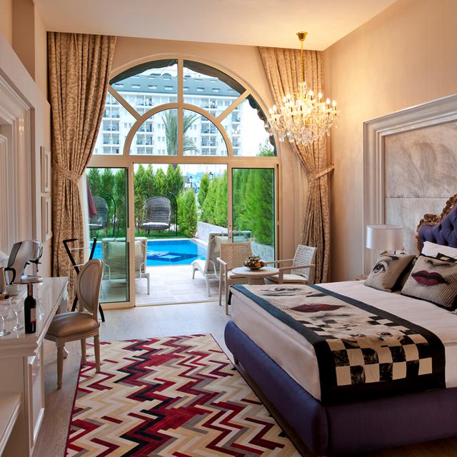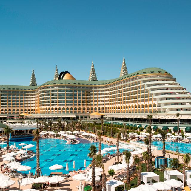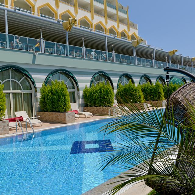 Het hotel is niet alleen van binnen schitterend, ook buiten is het er prachtig. En dat is maar goed ook, want van dat heerlijk warme Turkse zonnetje wil je natuurlijk zo min mogelijk missen. Er zijn verschillende zwembaden te vinden, waaronder een zwembad met glijbanen. Bij de miniclub, dat is omgetoverd tot een waar kasteel, is ook een kinderzwembad te vinden, met glijbaantjes speciaal voor de jonge reizigers. In de miniclub worden leuke, leerzame en gezellige acitviteiten georganiseerd en kunnen ze zich uitleven in de speeltuin.