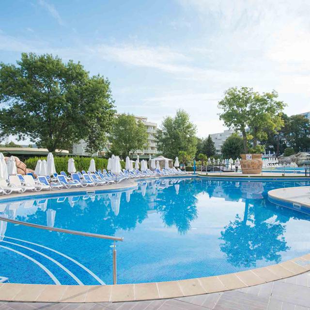 Hotel Flora Park vormt samen met DAS Club Hotel Sunny Beach een groots opgezet complex, waardoor je als gast profiteert van de faciliteiten van de twee omliggende hotels. Het goede all inclusive programma en de uitstekende service zorgen ervoor dat je hier zorgeloos kunt genieten van eindeloze dagen in de zon.