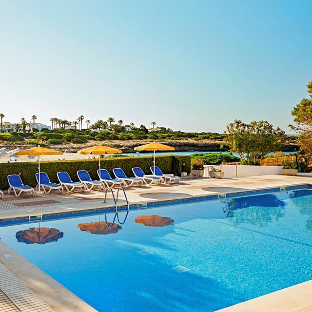 Hotel Globales Cala ’n Bosch ligt direct aan het prachtige strand. Na een paar passen kun je je handdoek al uitrollen en genieten van zon en zee.