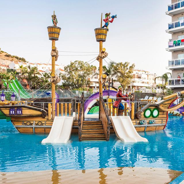 Rond de zwembaden zijn meerdere zonneterrassen aangelegd, waar je de hele dag van de zon kunt genieten. Een superleuke waterspeeltuin met een piratenboot en meerdere spectaculaire waterglijbanen zullen zorgen voor uren waterpret. Daarnaast is er overdag een compleet verzorgd animatieprogramma en wordt er ’s avonds gezorgd voor live muziek of een professionele show. Voor kinderen vanaf vijf jaar is er in het hoogseizoen een ontzettend leuke miniclub, waar zij o.a. kunnen kleuren, knutselen en geschminkt kunnen worden.