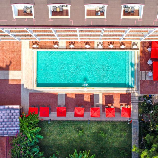 Het ruim opgezette hotel bestaat uit een hoofdgebouw en allemaal kleine gebouwtjes in de groene tuin. Hier liggen ook de restaurants waar heerlijke maaltijden en bars waar verkoelende drankjes worden geserveerd. Na een dag vol zon, een lange wandeling naar het gezellige Marmaris (je kunt natuurlijk ook de bus nemen) of het verkennen van de omgeving is er niets lekkerders dan op een terras nagenieten terwijl je van de lekkerste hapjes en/of drankjes geniet.