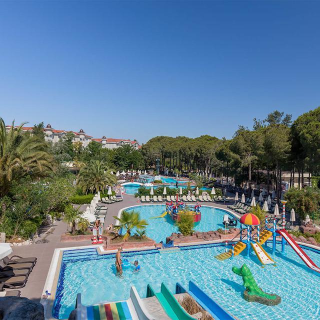 Hotel Gural Premier Belek is een heerlijk vakantieadres voor zowel jong als oud. Voor een zon, zee en strandvakantie zit je hier helemaal goed, want er is een heerlijk zwembad en je staat zo op het strand. Maar ook wanneer je juist gebruik wilt maken van diverse faciliteiten zit je hier perfect! Er is namelijk van alles te beleven. Zo heb je tal van sportieve faciliteiten zoals een tennisbaan, beachvolleybal, tafeltennistafels, noem het maar op! Ook kan je hier verschillende (tegen betaling) watersporten beoefenen. Er is een gameroom en de kids kunnen hun geluk niet op met het fantastische bijbehorende aquapark. Het aquapark heeft 27 spectaculaire glijbanen voor jong en oud. Ook zijn er verschillende zwembaden en is er voor de kleintjes een piratenschip met allerlei glijbanen. Een onvergetelijke vakantie beleef je in Hotel Gural Premier Belek.