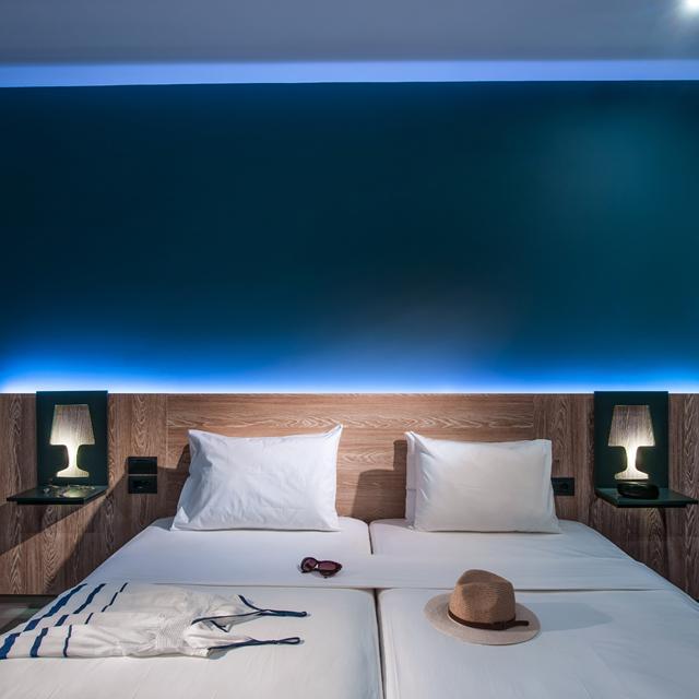 Hotel Infinity Blue Boutique & Spa is een modern ingericht hotel midden in hartje Chersonissos. Geniet van een lekker dagje op het strand, wat praktisch voor de deur ligt of neem een duik in het zwembad van het hotel. Bij de bar schenkt de ober graag een tropische cocktail voor je in.