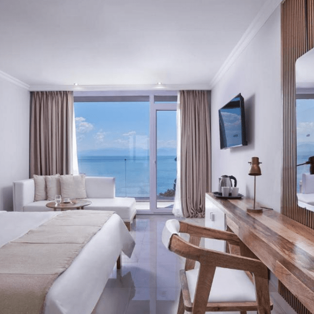 Op een unieke locatie op Corfu vind je het luxe Hotel Kairaba Mythos Palace. Dit adults only hotel ligt aan een prachtige baai en vanaf het terras, het zwembad en het geweldige rooftop restaurant heb je een adembenemend uitzicht op zee. Geniet van de zwembaden, rol je handdoek uit op je ligbedje op het strand of relax in de sauna of het binnenzwembad. Daarnaast er 5 dagen per week entertainment, waaronder livemuziek en shows.