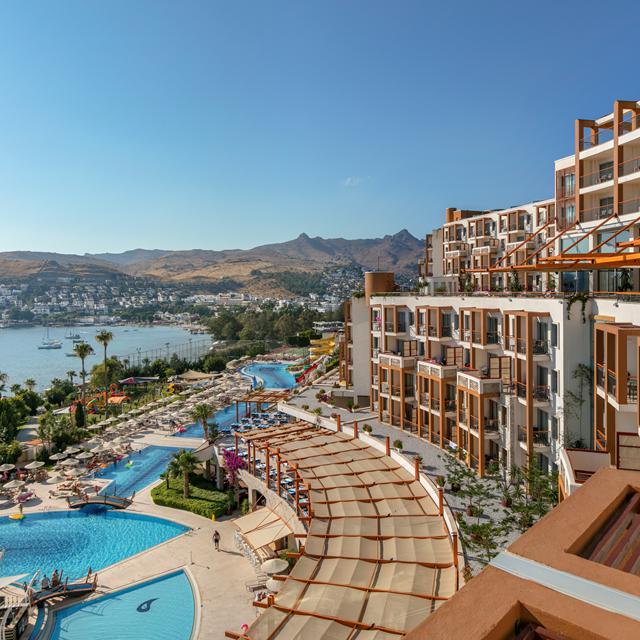 Aan het strand van het mooie badplaatsje Bodrum-Turgutreis ligt het schitterende Hotel Kefaluka Resort. Hier kun je aan de sfeervolle bar genieten van een lekker drankje tijdens zonsondergang boven de Egeïsche Zee.