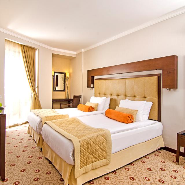 Hotel Korumar heeft een schitterende ligging aan een rotsachtige baai van Kusadasi. Een duik in de helderblauwe zee is al snel genomen vanaf de steiger of het kleine zandstrandje voor het hotel. Na slechts twee kilometer kun je al in de bruisende stad staan.