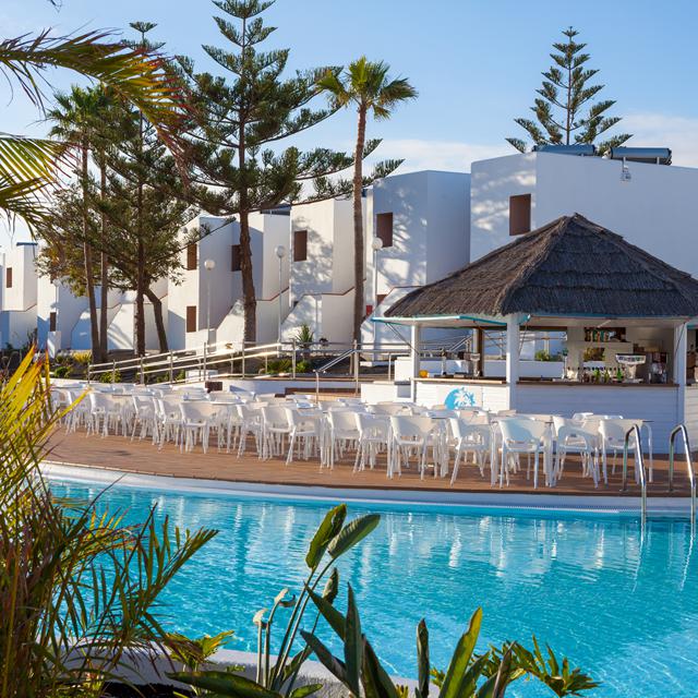 Rondom het grote zwembad van Labranda Bahia de Lobos kun je heerlijk wegdromen in de zon, maar een boek lezen in de schaduw van een parasolletje kan natuurlijk ook. Een koel drankje haal je bij de poolbar en lekker eten kan goed in het buffetrestaurant. Wat is het toch fijn dat je je een tijdje geen zorgen hoeft te maken over de boodschappen.
