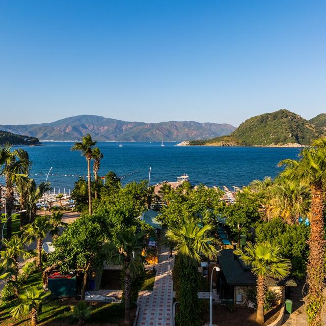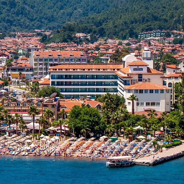 Het gezellige hotel L’Etoile Beach heeft een heerlijke ligging: pal aan het goudgele zandstrand en midden in het centrum van het leuke badplaatsje Icmeler. Je hoeft maar een klein stukje uit het hotel te lopen om de eerste restaurantjes en winkeltjes tegen te komen. Wil je de grotere plaats Marmaris, met een grote bazaar en sfeervolle haven bezoeken? Dat kan gemakkelijk met de dolmus (een kleine bus) of taxi.