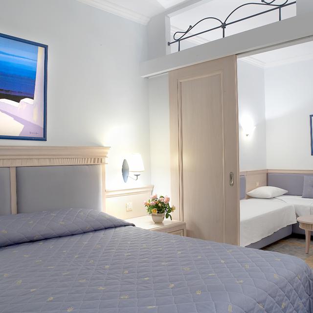 De kamers zijn ruim en je kunt kiezen tussen meerdere type kamers. De familiekamers beschikken allemaal over een schuifdeur die de kinderslaapkamer (deels) afscheidt van die van de ouders. Veel kamers liggen in lage bijgebouwen verspreid over de zeer verzorgde tuin.