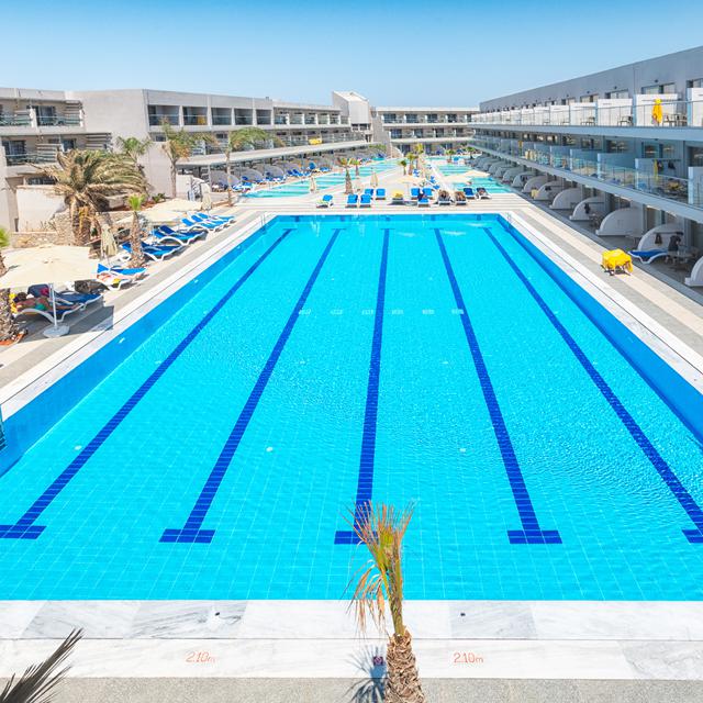 Er is een gloednieuw waterpark met glijbanen, waterspeeltoestellen en een lazy river. De kinderen willen nooit meer het water uit en alleen maar genieten van al het leuks om hun heen. Een hapje en een drankje heb je zo gehaald bij het nieuwe fast food restaurant. In het zwembad met Olympische afmetingen kun je baantjes trekken en wedstrijdjes houden. Ook kun je een potje basketballen, fitnessen, of een balletje slaan op 1 van de 15 tennisbanen.
