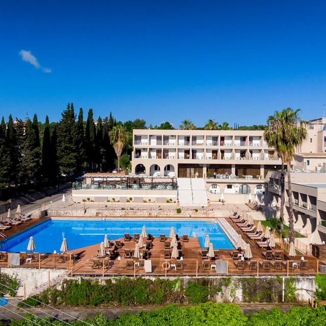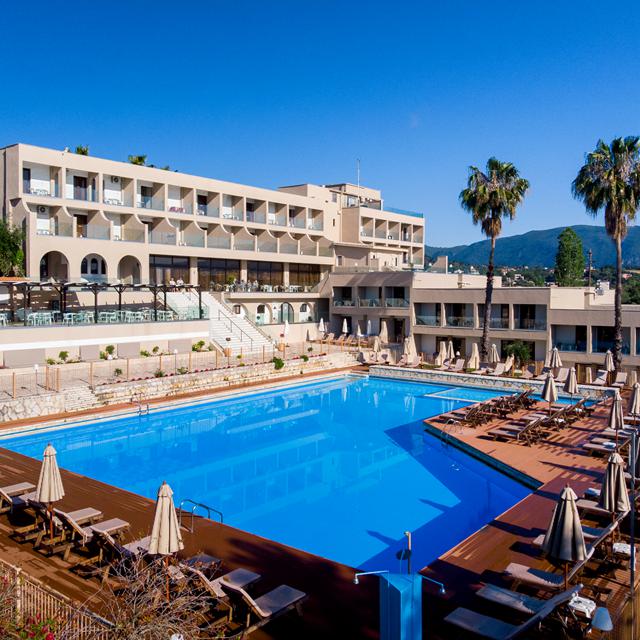 Aan de oostkust van het eiland Corfu in een mooie omgeving ligt Hotel Magna Graecia. Het levendige dorpje Dassia ligt vlak bij en hier vind je veel bars, cafés en traditionele tavernes. De omgeving wordt gekenmerkt door bossen met prachtige eeuwenoude bomen en dat biedt een mooi contrast met de turquoise blauwe zee op de achtergrond.