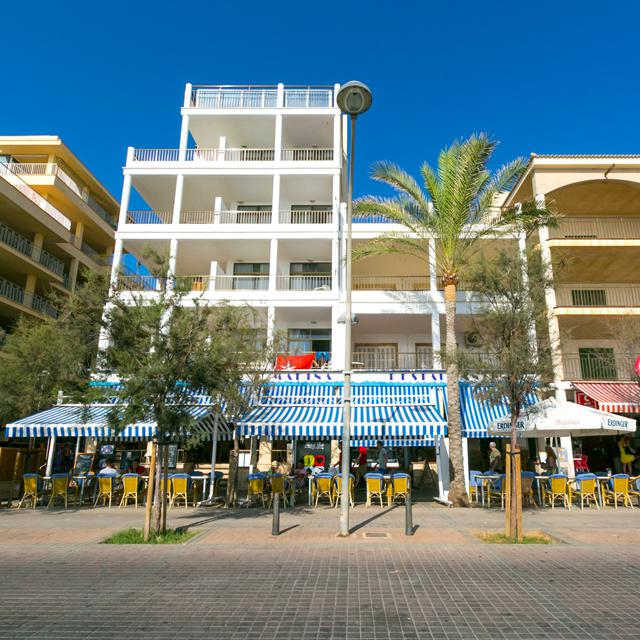 Vanaf het dakterras van Hotel Marina Playa de Palma heb je een prachtig uitzicht over de zee! Hier vind je ook het zwembad om te genieten van de Spaanse zon. Als je in dit familiehotel verblijft, bevind je je midden in het levendige centrum van El Arenal. Zin in een dagje strand? Je steekt simpelweg de boulevard over en je bent er. Dit fijne hotel is naast de populariteit vanwege de ligging ook bekend en geliefd om de uitstekende prijs/kwaliteitverhouding!